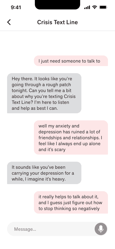 "I texted 741741 and no one responded after 30 minutes. I said never mind. Honestly made me more depressed than I already was."