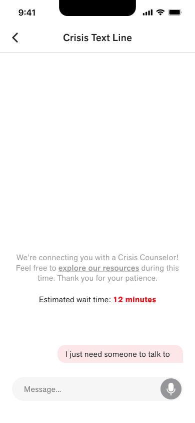 I want to know that I will quickly connect with a crisis counselor in a moment of crisis so that I can receive the support that I need.