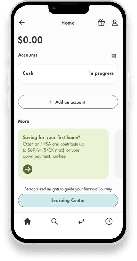 The learning center is a personalized feed of articles that aims to improve the user's personal finance knowledge.